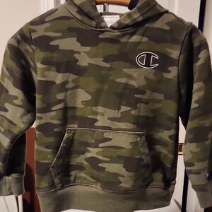This Champion kids hoodie features a stylish camo design in green. Perfect for everyday wear, it combines comfort and style effortlessly.