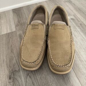 L.L. Bean Creme Leather Slip On Deck Leather Moccasin Shoe Men's size 12 medium