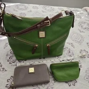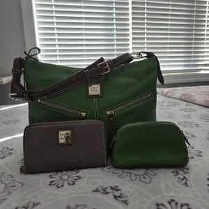Stylish and versatile, this Dooney & Bourke bag set features a vibrant green and elegant gray combination. Perfect for any occasion, it offers both functionality and fashion.