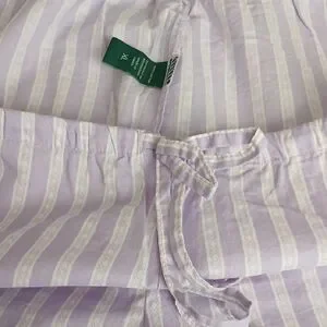 striped pajama top and cropped bottom pants. Button-down style. Soft fabric.Never worn only washed.