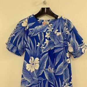 Malihini Hawaii Dress Blue White Floral Medium