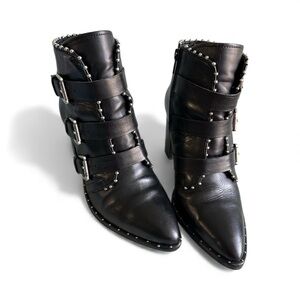 STEVE MADDEN Black Leather Studded Buckle Ankle Boots