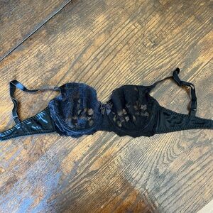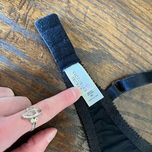 Set of 2-- off-white an black. Satin sides. Very lightly used, black bra has slight pilling on inside as shown. Not noticeable when worn.