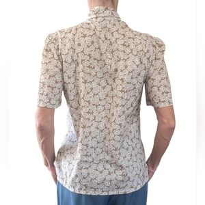keywords: vintage blouse, tie neck blouse, 1980s secretary blouse, lightweight floral blouse, retro, floral, cottagecore, coquette girl, workwear, feminine, lightweight, office, business casual, professional, layer, 80s, layering top, trendy, neutral floral blouse, preppy blouse