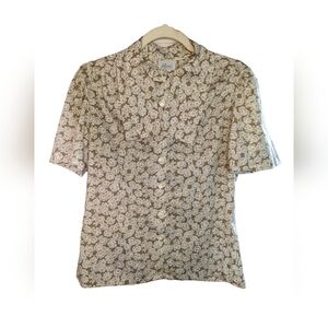Vintage Alicia Floral Retro Short Sleeve Neck Tie Coquette Girl Blouse Size S