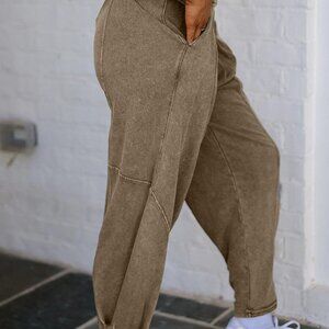 B349 Elmwood Mineral Wash Jogger Style High Waist Casual Pants