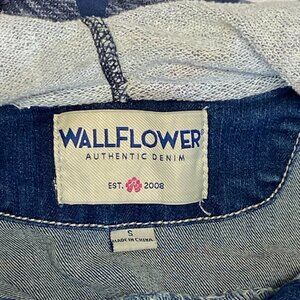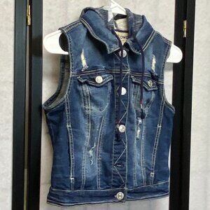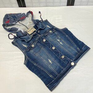 Wallflower Hooded Distressed Denim Buttonup Vest S Medium Wash Casual Sleeveless