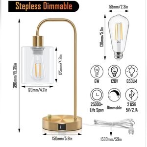 Gold Industrial 3-Way Dimmable Touch Control Table Lamps w/ USB Ports (Set of 2)