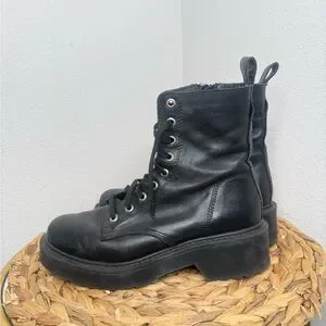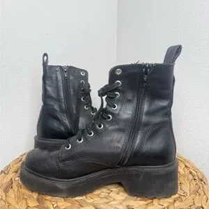 Steve Madden Black Combat Boots leather platform, lace up Moto biker