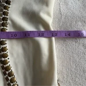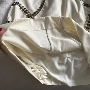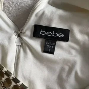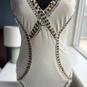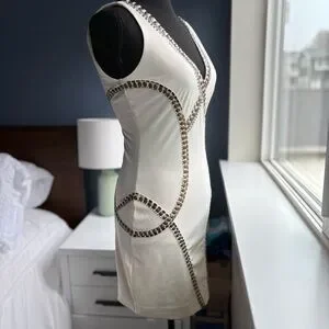 Bebe Cream Bodycon Sleeveless Mini Dress with Gold Studs & Sequins - Sexy Party