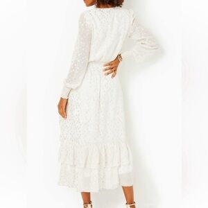 Lilly Pulitzer Cristiana Midi Dress Womens 8 Metallic Coconut Print Gold Ruffle