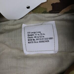Size on tag: XX-Large-Long; recommended height 71 to 75 inches and chest 49 to 53 inches; NATO size 8090/2435.