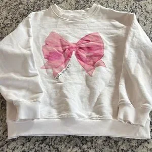 Adorable white sweatshirt featuring a charming pink bow design. Perfect for adding a touch of fun to your child's wardrobe. Made by for comfort and style.