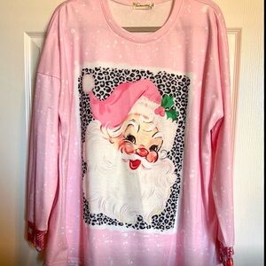 Santa Long Sleeve pink plus size Christmas shirt XXL pinkmas