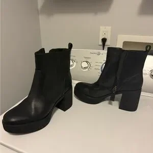 Chic black ankle booties with a sturdy block heel. Ideal for versatile styling.