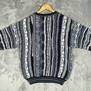 Vintage Alberto Danti 3D Knit Coogi Cosby Style Sweater Mens Blue Size Large