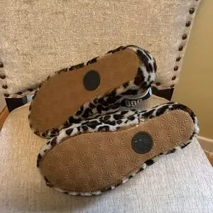 Gorgeous leopard print UGG fluff yeah shoes/slippers. Women’s size 9. Super cozy and perfect for all seasons! Soft and full shearling. Purchased new from UGG, and barely worn. Like new condition. No original box, will ship in a different box. Neutral tone colour way. Smoke free home. Take cozy up a notch with these gorgeous shoes!