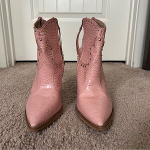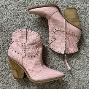 Sam Edelman Iris booties, Sam Edelman pink boots, Sam Edelman ankle booties, croc embossed leather boots, studded pink ankle boots, women’s western booties, cowgirl style booties, pink leather pointed toe boots, Sam Edelman size 10 boots, festival ankle boots, boho chic booties, edgy pink leather boots, trendy cowgirl boots, concert boots pink, Sam Edelman croc boots, Sam Edelman cowboy booties, pink statement boots, fashion