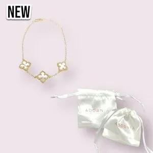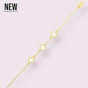 New Adornia Mother of Pearl Clover Flower Station Bracelet - GOLD / White