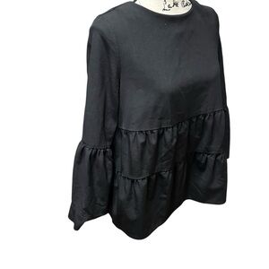 COS Lightwt Peplum Wool Tiered Blouse Mid Sleeves Sz 2