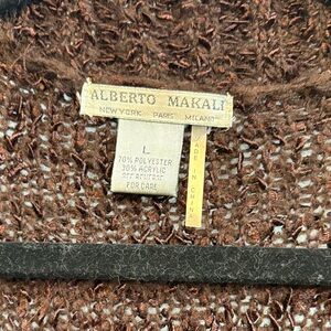 Elegant chocolate knit cardigan with intricate texture. Ideal for chic layering.