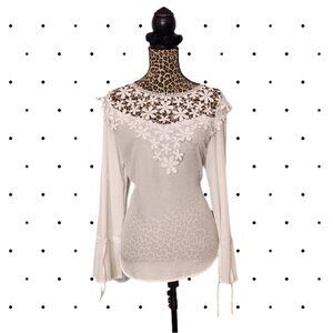 White Blouse with flower detail and wrist ties SIZE XL
