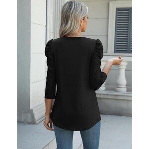 Features: Soft, stretchy cotton blend fabric with a flattering cut. Puff detail on the sleeves adds a cute, energetic vibe. Easy to pull on with a classic crew neck, perfect for both work and casual outings.