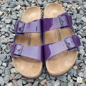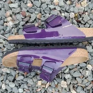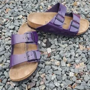 Birkenstock Arizona Birko Flor Patent Purple Plum Women's Sandals Size 10 Narrow