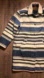Vintage Woolrich Blue & Cream Striped Wool/Mohair Coat in size small. Pit to pit is 23.5 inches. 34 inches long. Made in USA. Functional front pockets. Metal buttons. In excellent vintage condition.