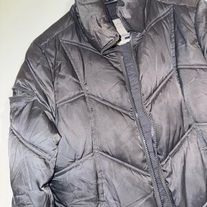 Stylish puffer with quilted pattern. Features full zip and high collar. Perfect for chilly days.