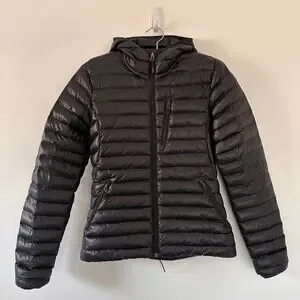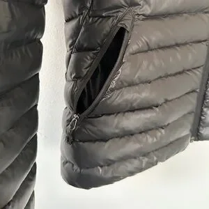 Zippered hand and chest pockets keep things secure; elastic-bound cuffs provide a snug fit. Adjustable drawcord hem blocks drafts. Attached hood. Purchased in 2017, this style is no longer available and is impeccably cared for. Excellent condition. Tons of life left and ready for more winters!