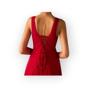 New commense Red Maxi Dress Square Neck Lace-Up Corset Back Size large. This stunning red sleeveless dress is perfect for any occasion. Its elegant design and vibrant color make it a must-have in your wardrobe. Great for a holiday / Christmas party / photos.