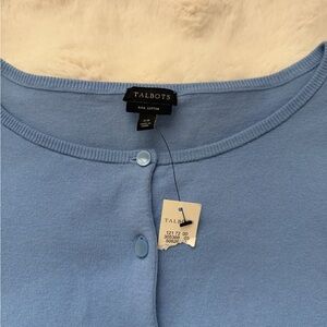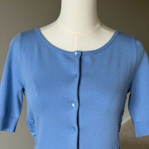 Talbots Lace Pima Cotton Blue Button-Down Elegant Cardigan Top-XS