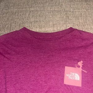 Magenta long sleeve shirt by The North Face. Features chest logo detail.