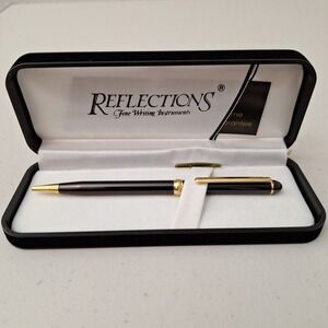 Vtg Reflections Fine Writing Instrument Pen Black And Gold In Original Gift Case