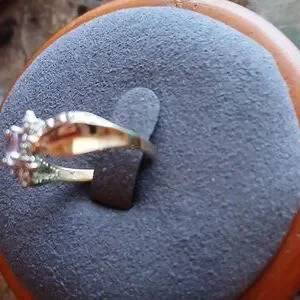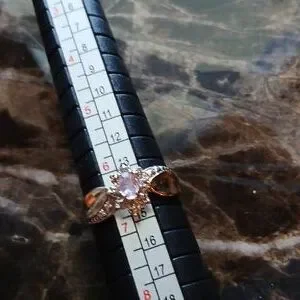 Unusual, lovely pink gemstone 10k size 7 ring. Gold band looks like it has a satin finish. It was tested by jeweler. Not sure about the pink gemstone...gemnologist charges $100 per ring.