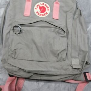 Keywords: kanken, mini backpack, travel bag, school backpack, daypack, pink trim, grey bag, classic, everyday, commuter, lightweight, functional