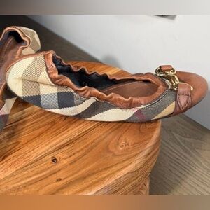 Burberry Ballet Flats “House Check” size 37 (6.5) Brown Tan with Gold Accents