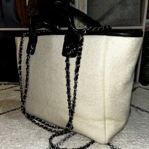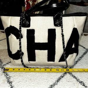 Stylish tote bag. Bold black lettering on white fabric. Perfect for everyday use. CC inspiration, no brand, *NEW PICS*