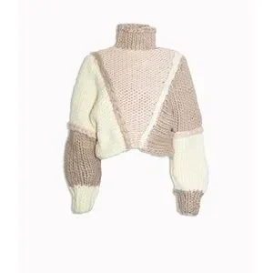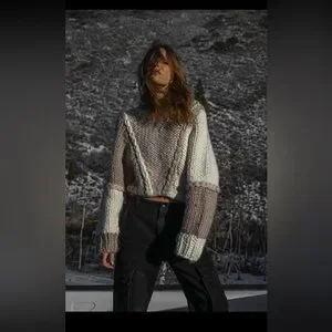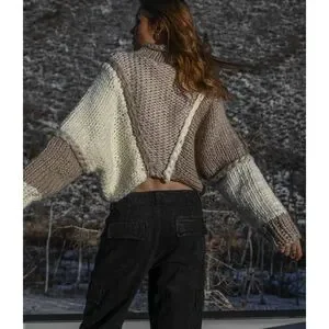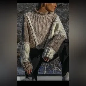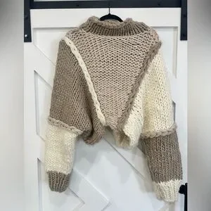 Stay warm and stylish with this cozy colorblock sweater. Featuring a blend of cream, tan, and brown hues, it's perfect for any casual outing.