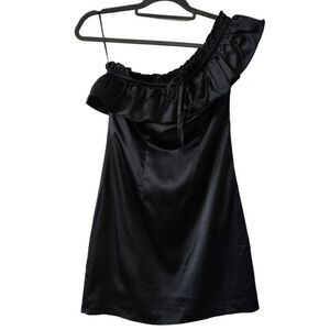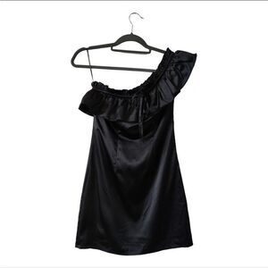 VILA | Black One Shoulder Satin Cocktail Dress | Size: Small