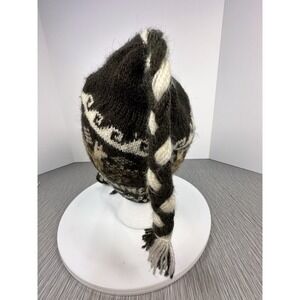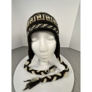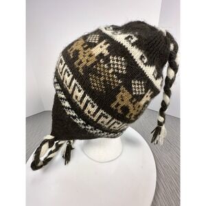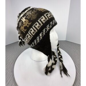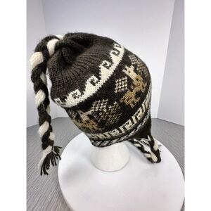 Toboggan Beanie Tassel Ear Flap Hat Knit Braids Llama Browns Creams Chullo