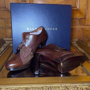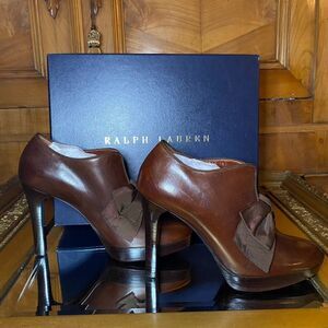 Ralph Lauren 2007 Runway Collection Made in Italy Brown Calf Platform Bow Bootie