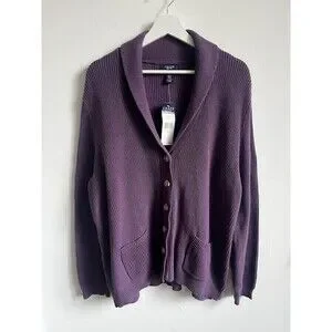 Chaps Classic Women’s Purple Shawl Sweater Cardigan Sz 3XL Buttons Academia NWT
