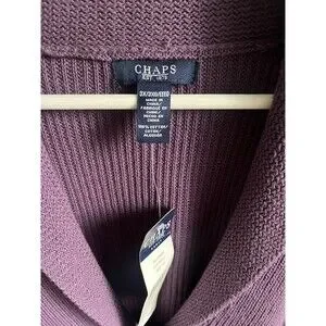 The Chaps Classic Women's Purple Shawl Sweater Cardigan in size 3XL is a stylish and versatile piece for women. Made from soft cotton with a tight-knit design, this long-sleeved cardigan features a classic collared neckline and pleated accents. Perfect for travel, casual, or business occasions, this colorful and preppy sweater is ideal for the winter and fall seasons. The solid purple color adds a pop of color to any outfit, making it a great addition to any wardrobe.