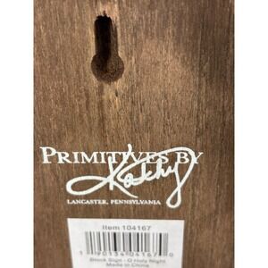 Primitives by Kathy O Holy Night wood block sign. This decorative sign features a winter forest scene with the phrase "O Holy Night" in a script font. The back of the block has a keyhole cutout for easy hanging and displays the brand logo and item number.