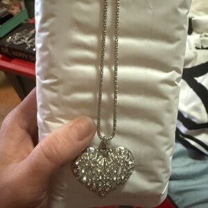 Elegant Silver Heart Pendant Necklace with sparkly crystals.