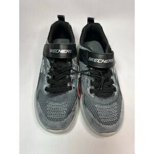 Skechers Microspec Max Sneakers Black Gray Knit Mesh Boys NWT 3 Velcro Lightweight