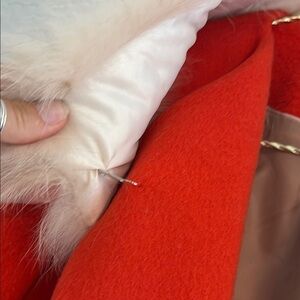 This pea coat combines a vibrant red and cream color palette with a classic tailored silhouette, perfect for cold-weather elegance. The structured design and luxurious material make it an ideal choice for formal occasions, ensuring both warmth and style.