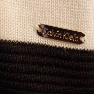 Calvin Klein White and Black Cowl Neck Sweater, Sz M